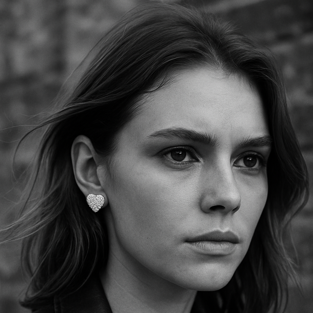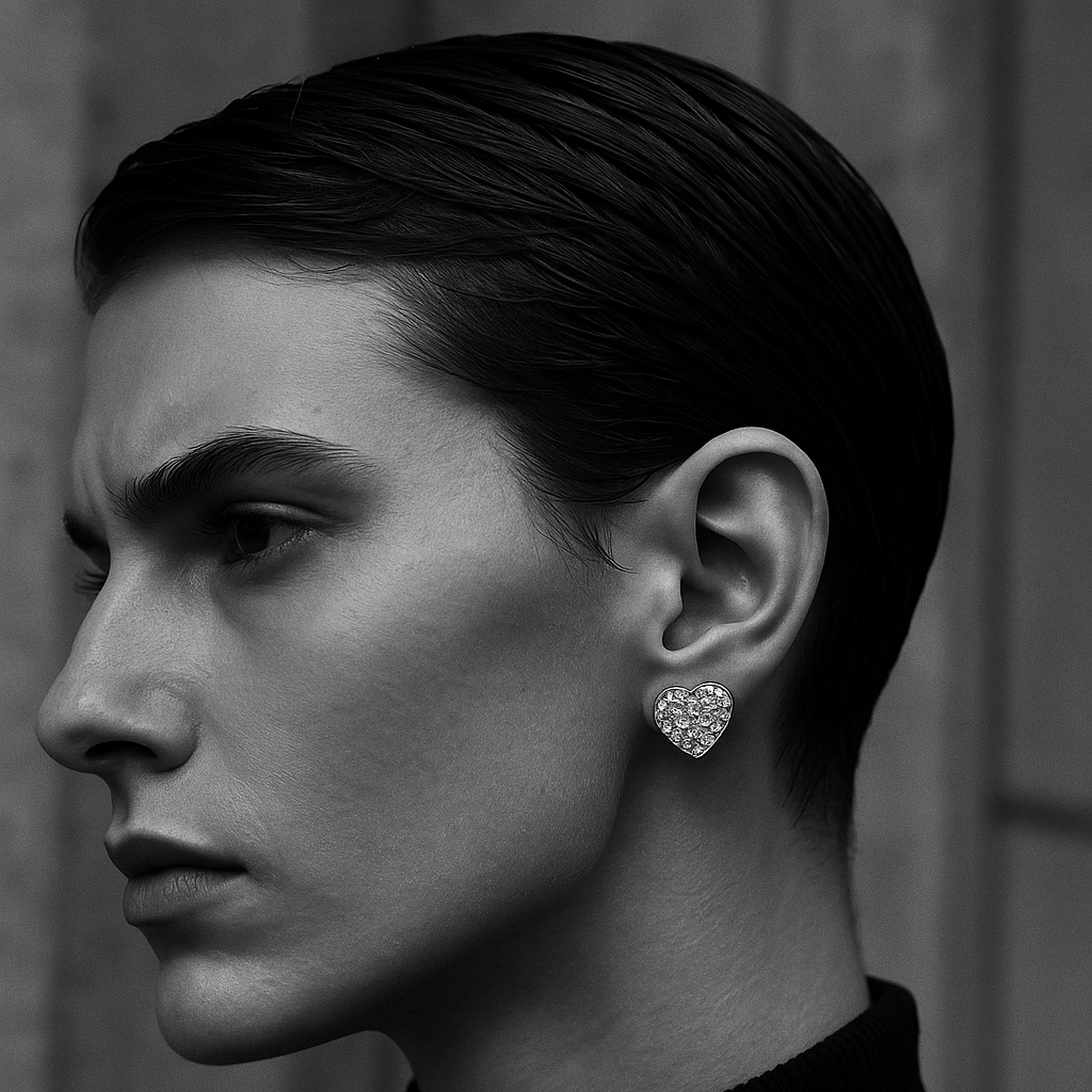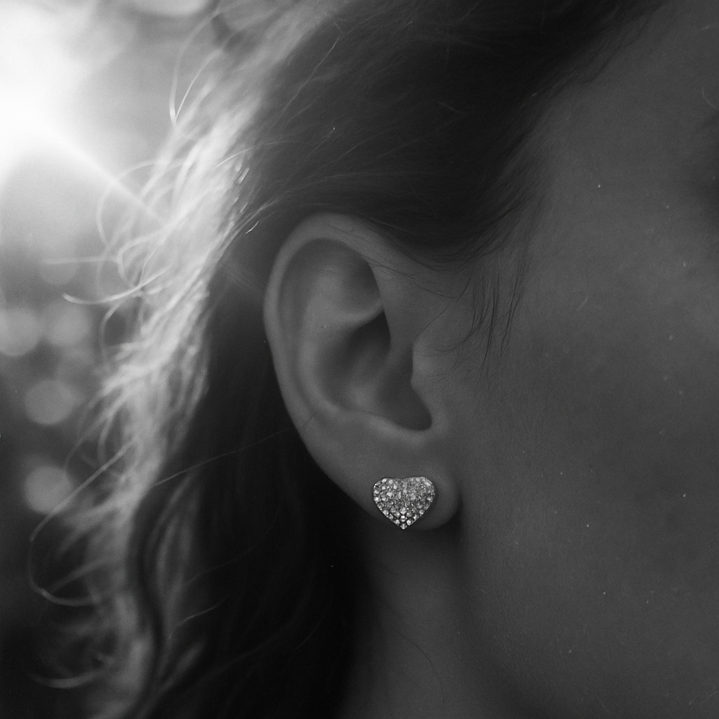 round, brilliant cut vvs moissanite. claw set on a heart stud plated with rhodium or gold.